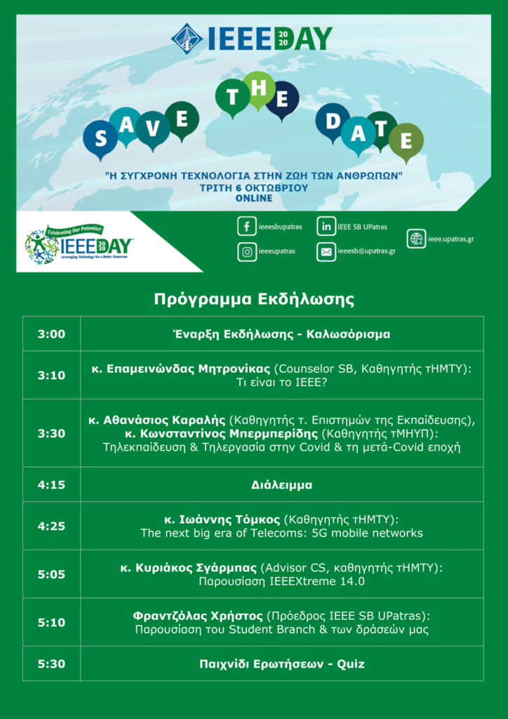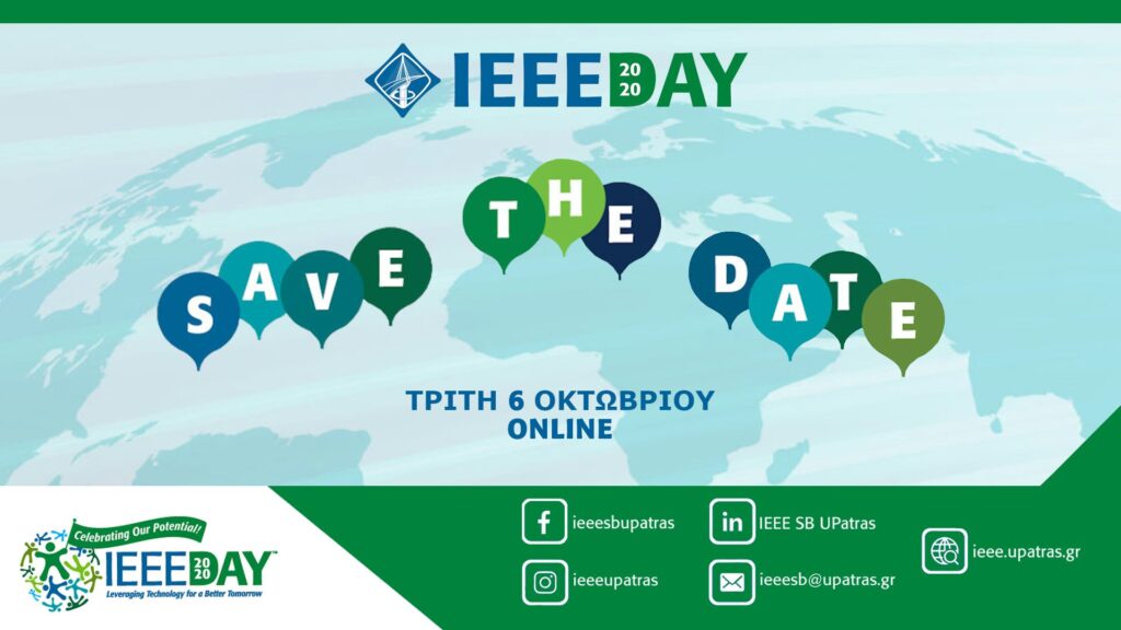 On the IEEE Day, Tuesday October 6, at 3 pm, the IEEE University of Patras Student Branch will organise an online event entitled Leveraging Technology for a better today and tomorrow!