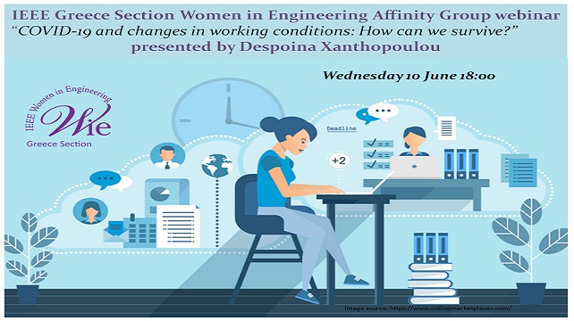 The IEEE Greece Section Women in Engineering Affinity Group organizes the following webinar “COVID-19 and changes in working conditions: How can we survive?” on Wednesday 10 June at 18:00 through Cisco WebEx platform.